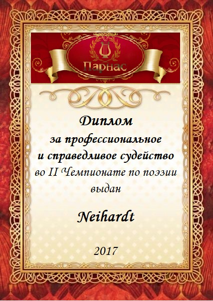 ![]() Золотой кубок "Судья II Поэтического Чемпионата Парнаса"