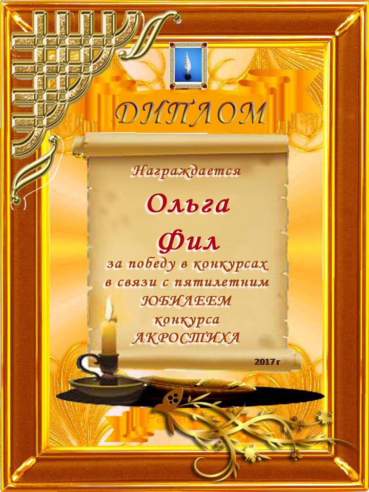 Диплом победителю в конкурсах Акростиха в связи с пятилетием конкурса Акростиха!