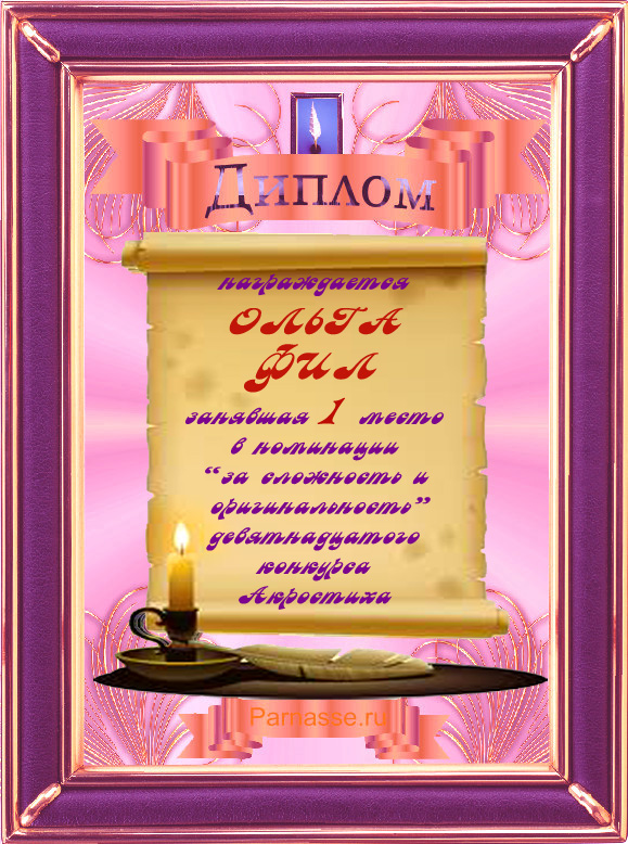 Диплом за победу в 19 конкурсе АКРОСТИХА в дополнительной номинации "За сложность и оригинальность"! ПОЗДРАВЛЯЮ!