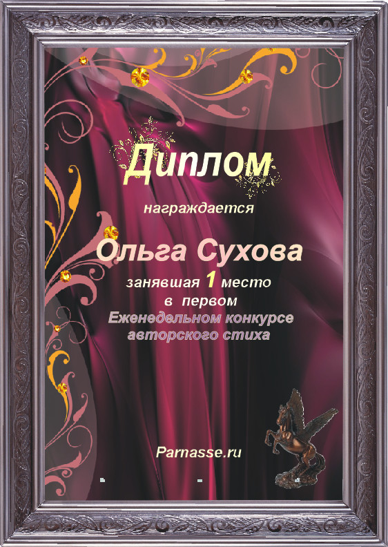 Медаль за ПЕРВОЕ место в "Конкурсе Авторского Стиха"!