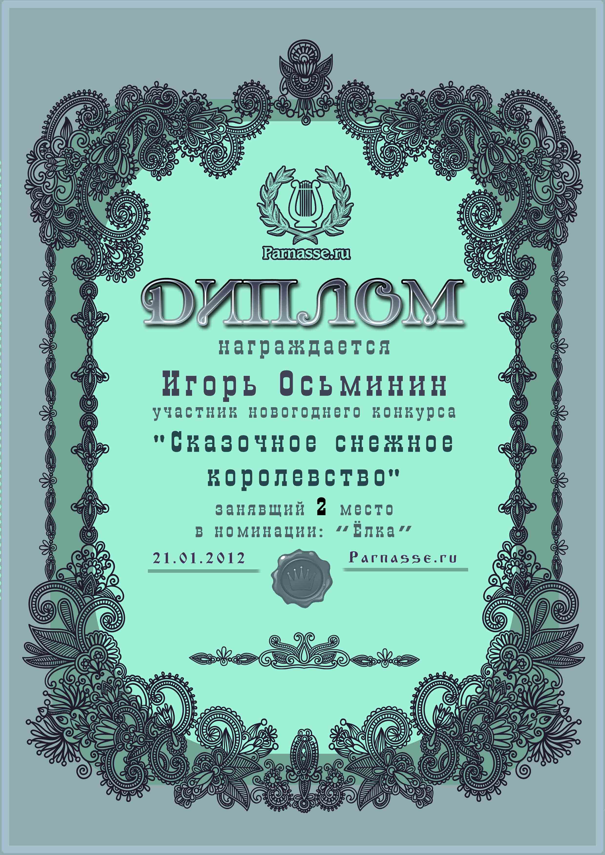 ![]() Второе место в конкурсе «Сказочное снежное королевство!»