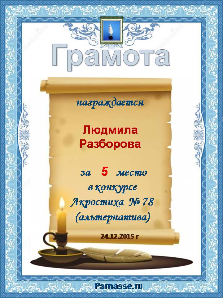 Диплом победителю в конкурсах Акростиха в связи с пятилетием конкурса Акростиха!