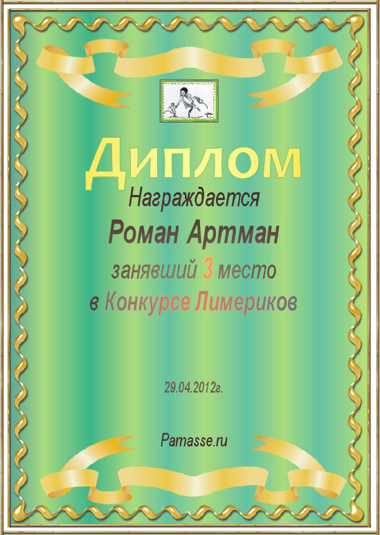 Диплом за 3 место в конкурсе лимериков №10 (06.05.2012.)