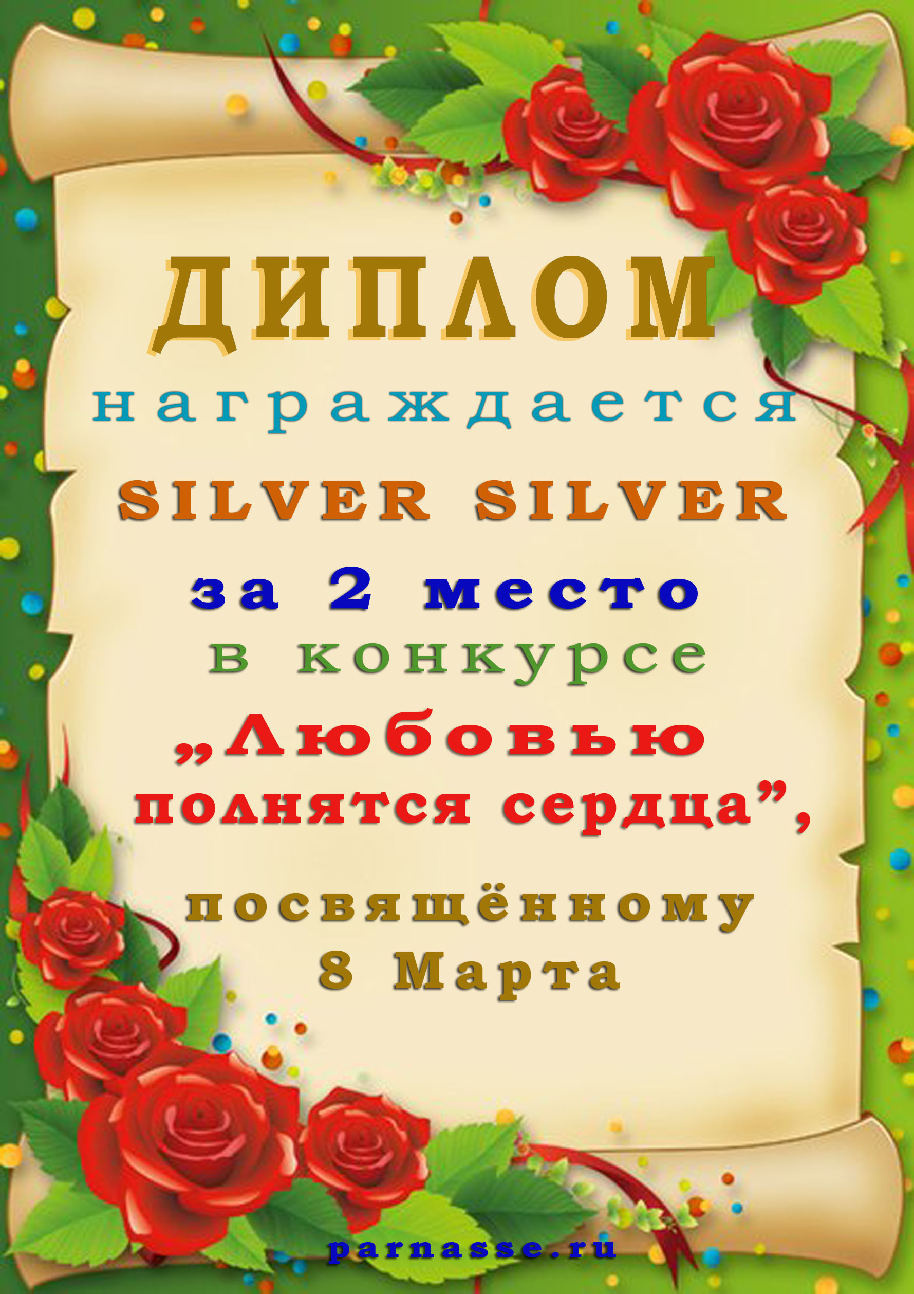 За 2 место в Конкурсе "Любовью полнятся сердца", посвящённого 8 Марта