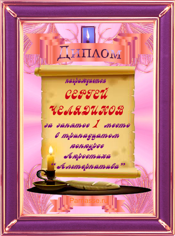Диплом победителю в конкурсах Акростиха в связи с пятилетием конкурса Акростиха!
