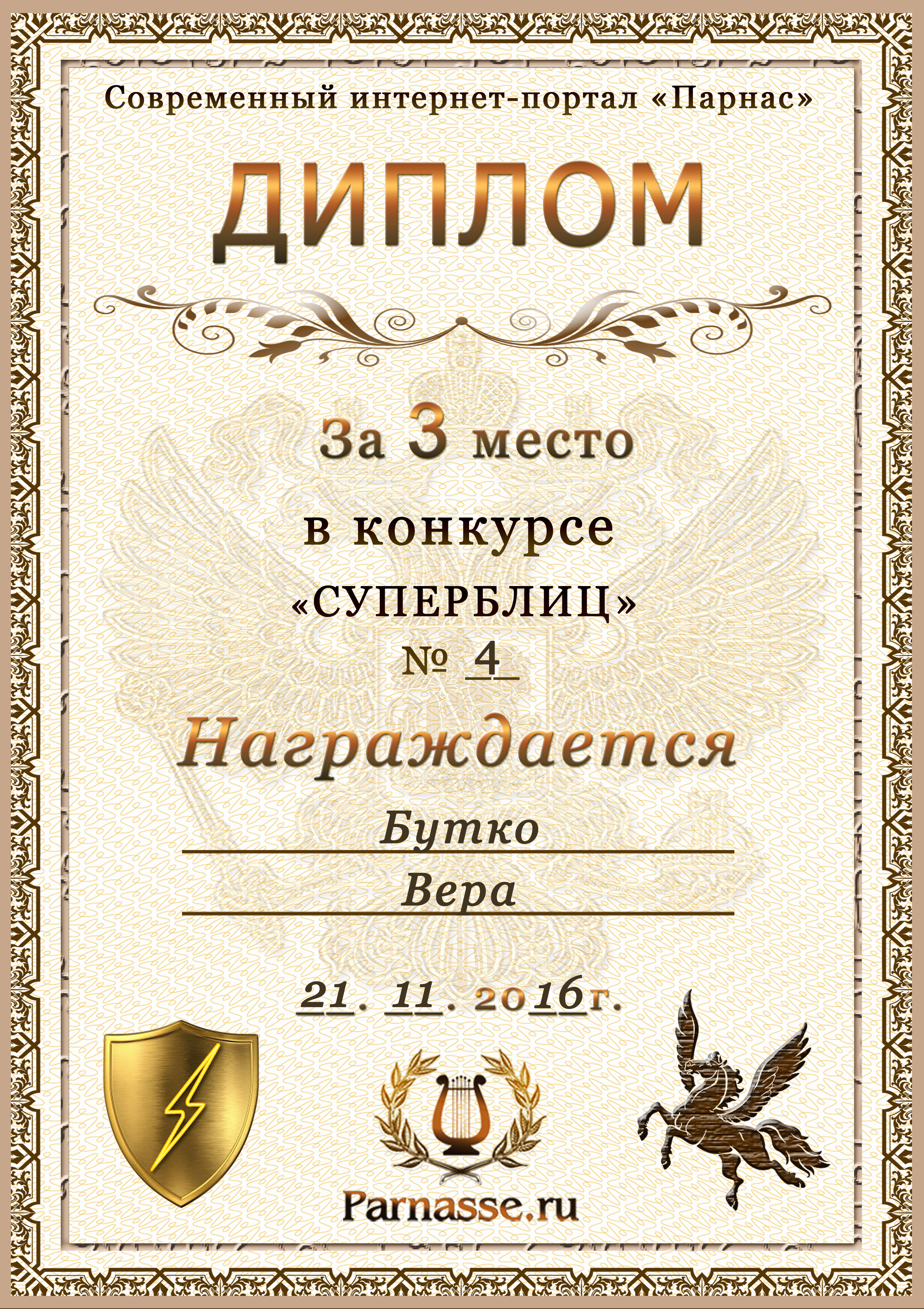 Диплом за 3 место в 4 конкурсе СУПЕРБЛИЦА!