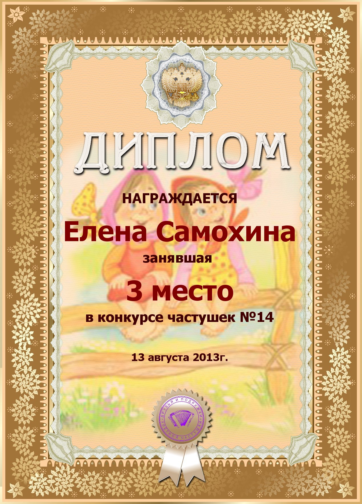 ПЕРВОЕ МЕСТО В КОНКУРСЕ ЧАСТУШЕК №2++