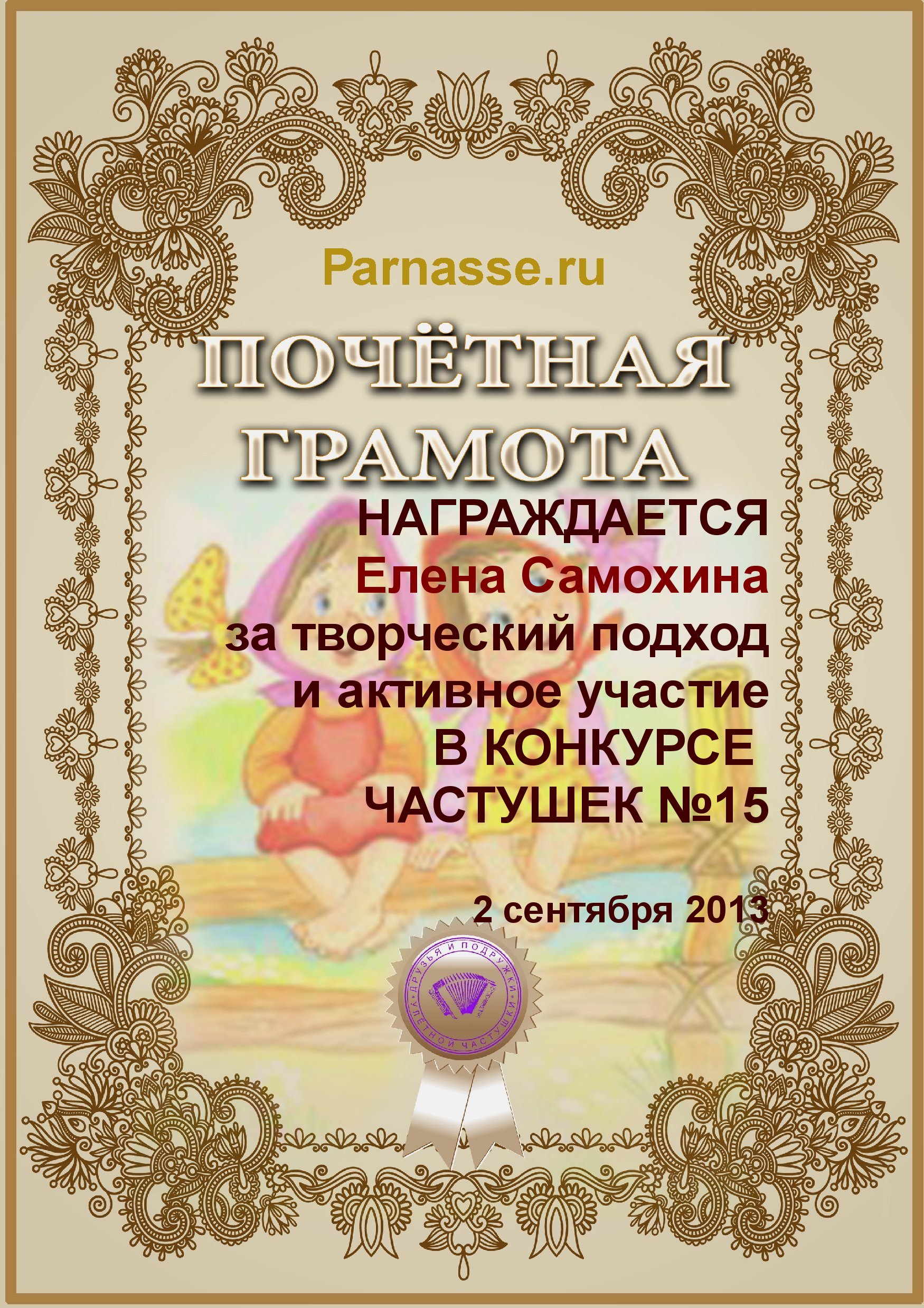 Похвальная грамота за активное участие в конкурсе лимериков № 64+ (19.01.2015 г.)