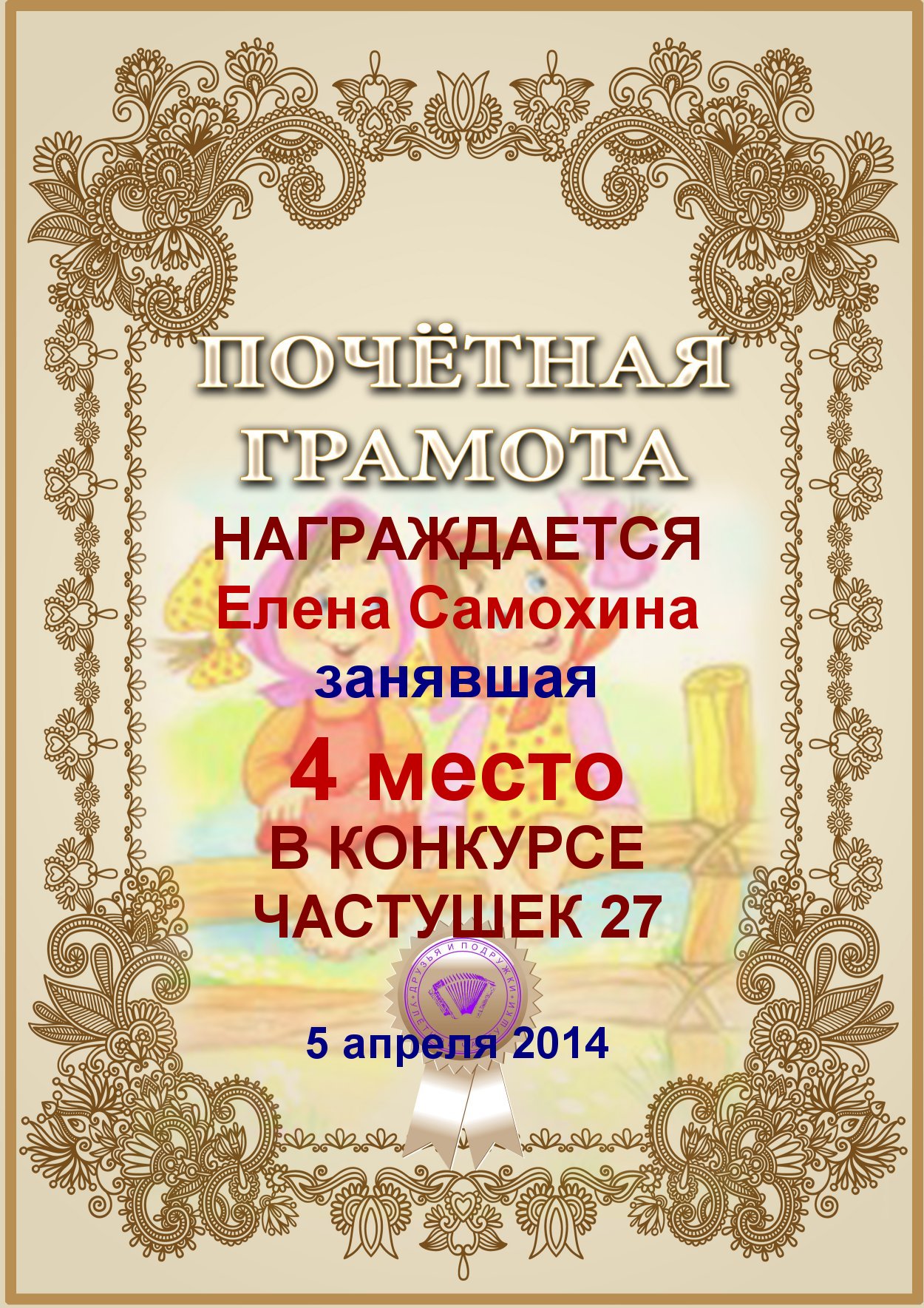 Похвальная грамота за 4 место в конкурсе лимериков № 51+ (23.03.2014 г.)