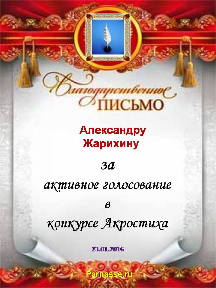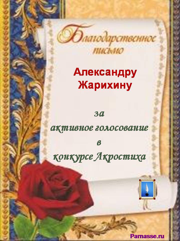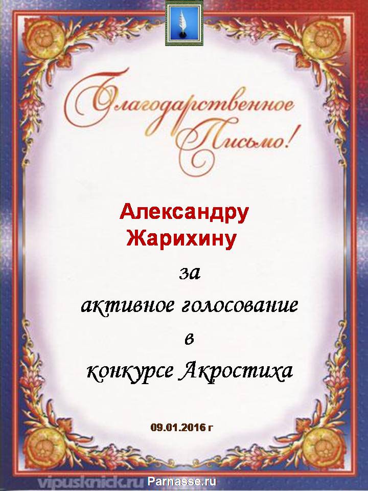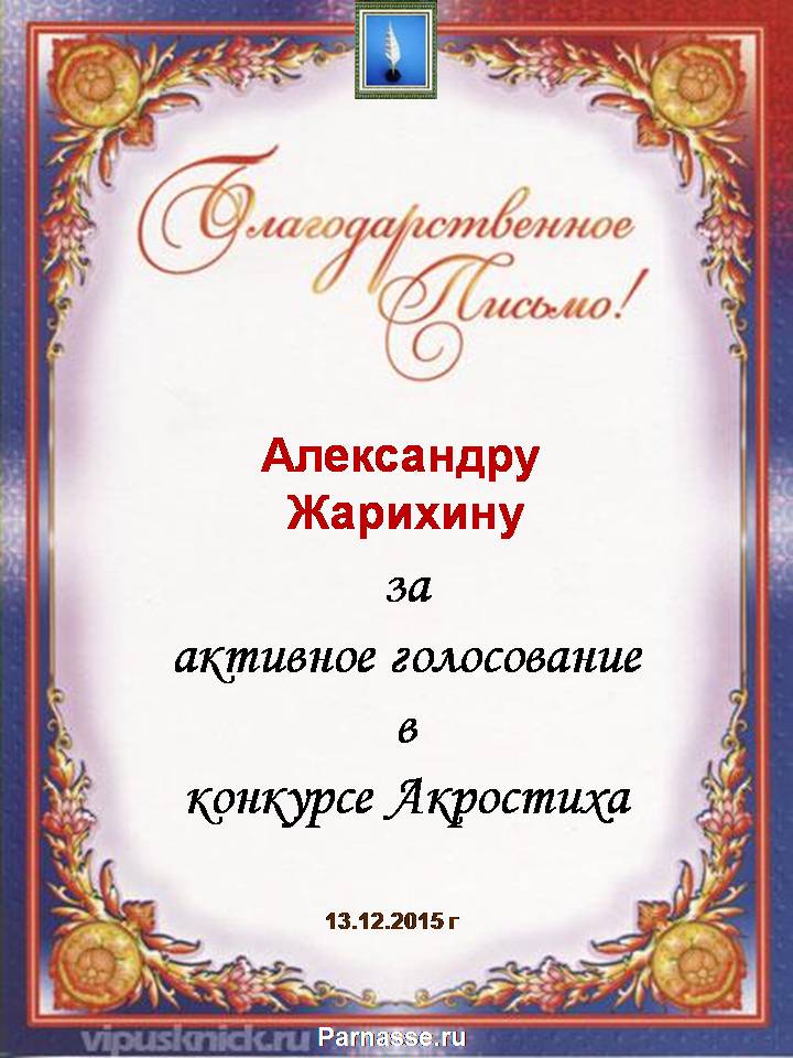 Грамота за активное голосование и комментирование в конкурсе АКРОСТИХА!ПОЗДРАВЛЯЮ!