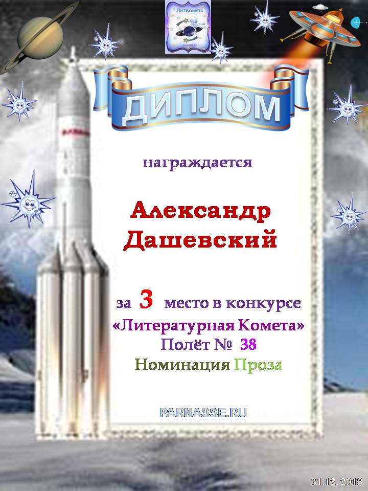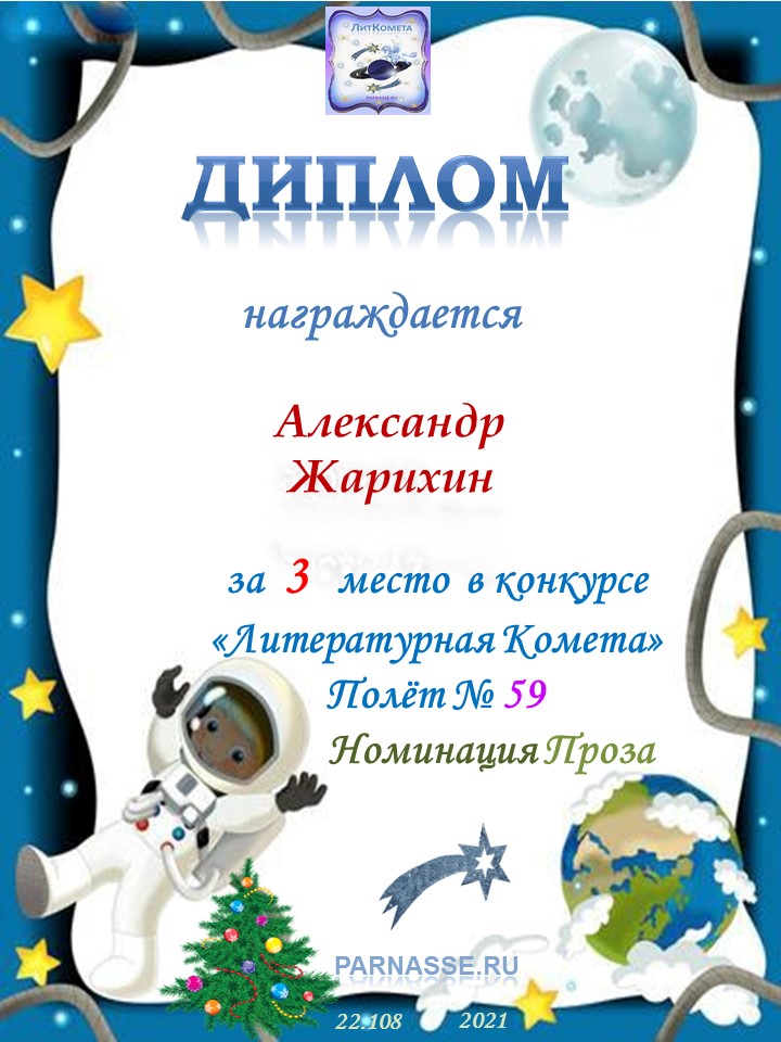Поздравляю с занятым 3 местом в конкурсе "Литературная Комета - Полёт № 59" Номинации Проза!
