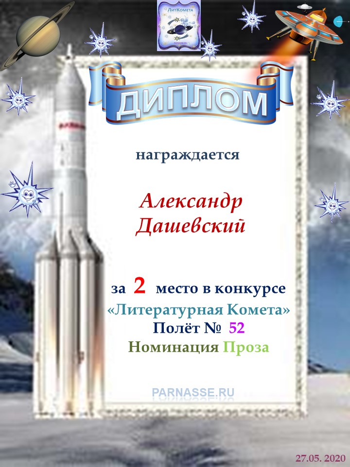 Поздравляю с занятым 2 местом в конкурсе "Литературная Комета - Полёт № 52" - Номинация Проза!
