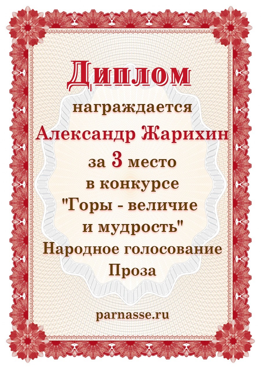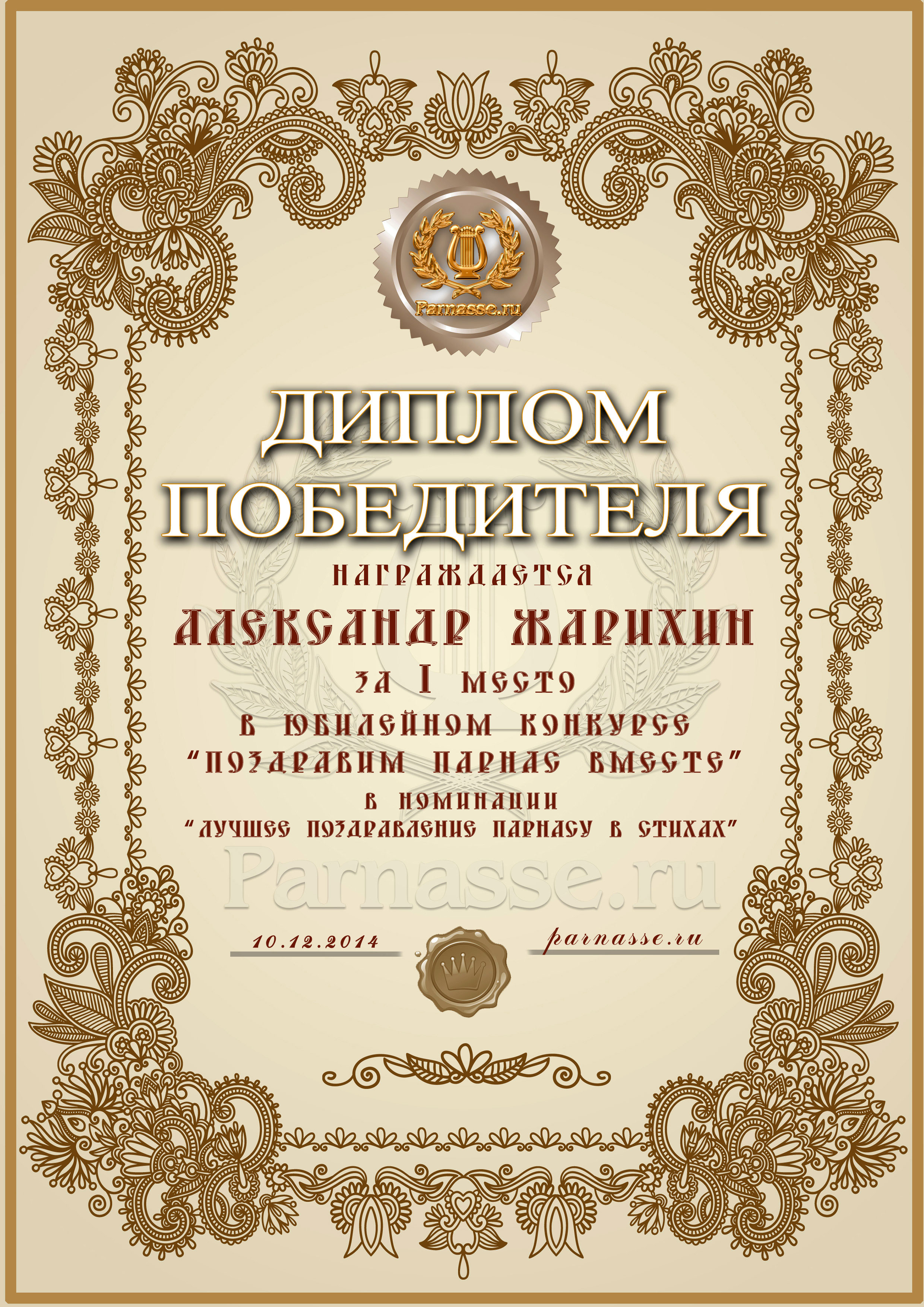 Диплом за 1 место в праздничном конкурсе "Поздравим Парнас с трёхлетием вместе!"