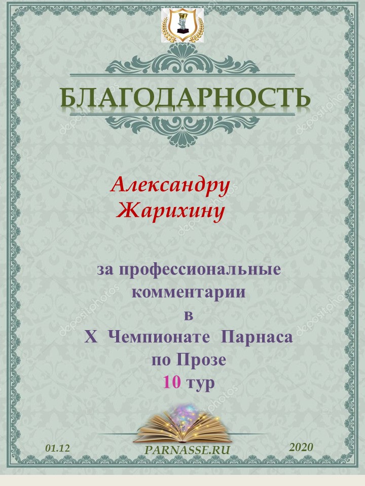 Большое спасибо за профессиональные и объективные комментарии в 10 туре X Чемпионата Парнаса по Прозе!