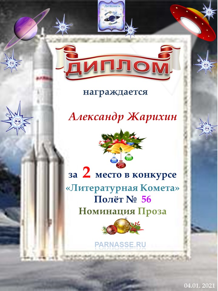 Поздравляю с занятым 2 местом в конкурсе "Литературная Комета - Полёт № 60" в Номинации Проза!