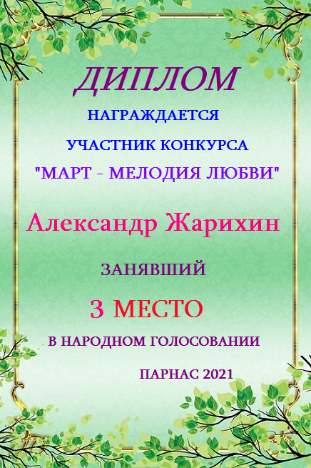Третье место в народном голосовании по итогам конкурса " Март - мелодия любви"