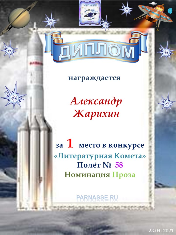 Поздравляю с занятым 1 местом в конкурсе "Литературная Комета - Полет № 58" - Номинация Проза!