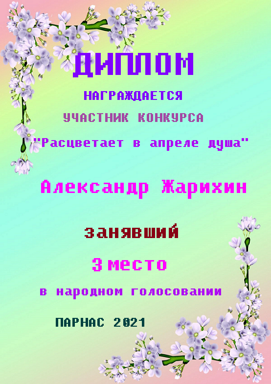 Третье место в народном голосовании по итогам конкурса "Расцветает в апреле душа"