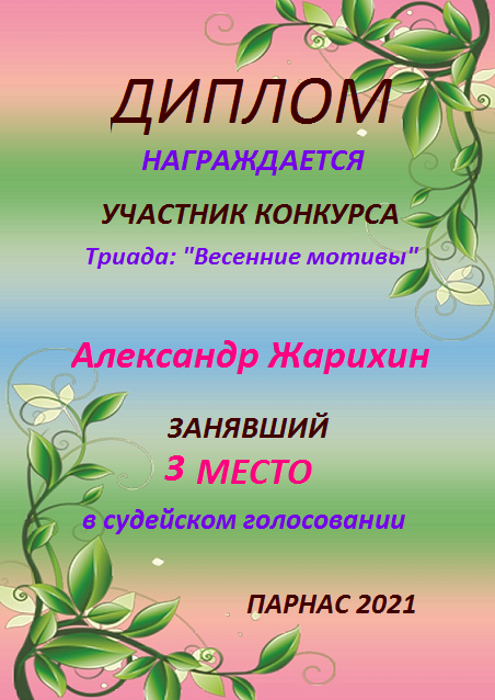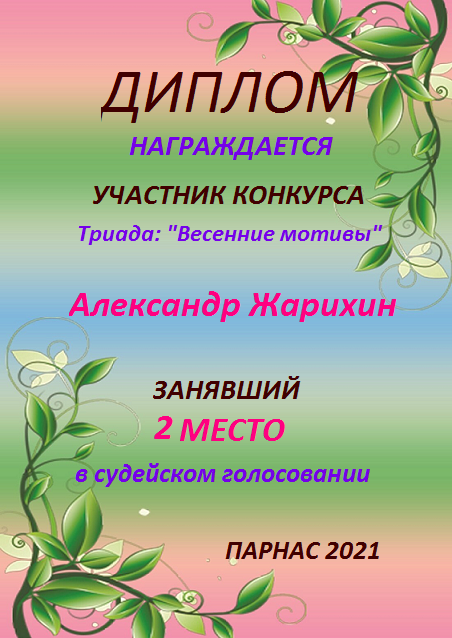 Третье место в судейском голосовании по итогам конкурса Триада: «Весенние мотивы»