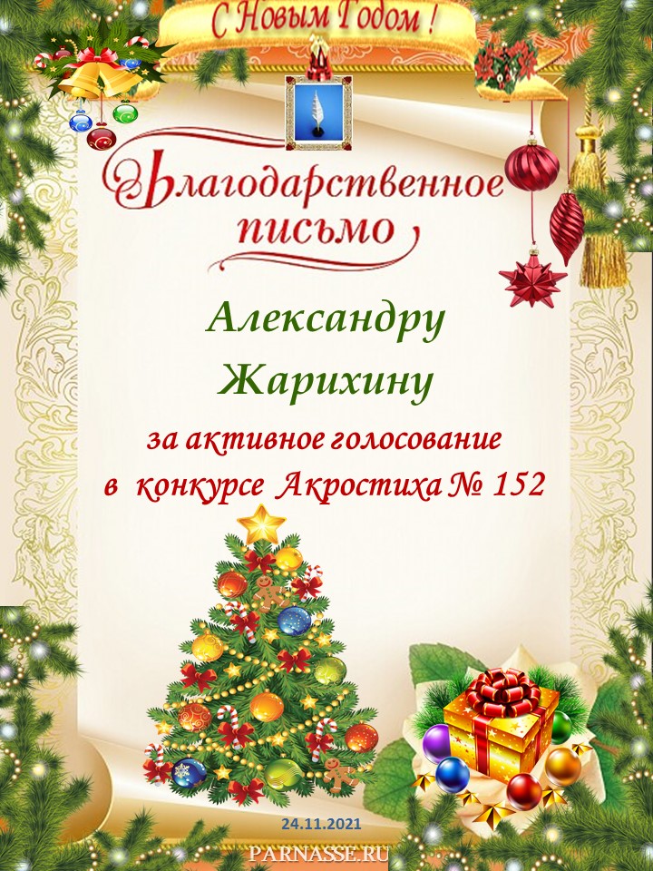 Благодарность за активное голосование в конкурсе Акростиха № 152СПАСИБО БОЛЬШОЕ!