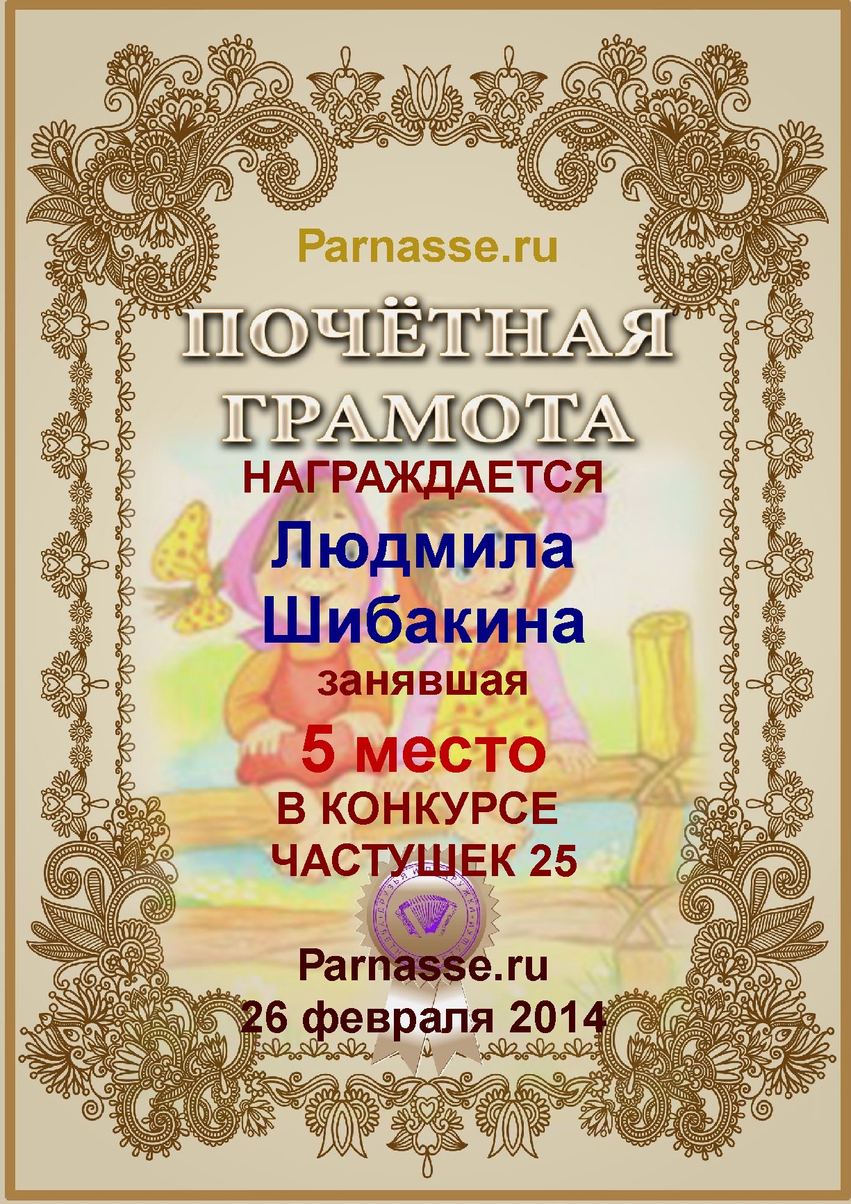 За участие в Пятом Поэтическом Турнире