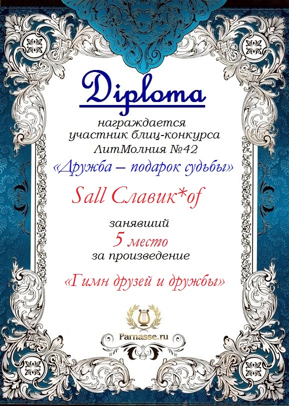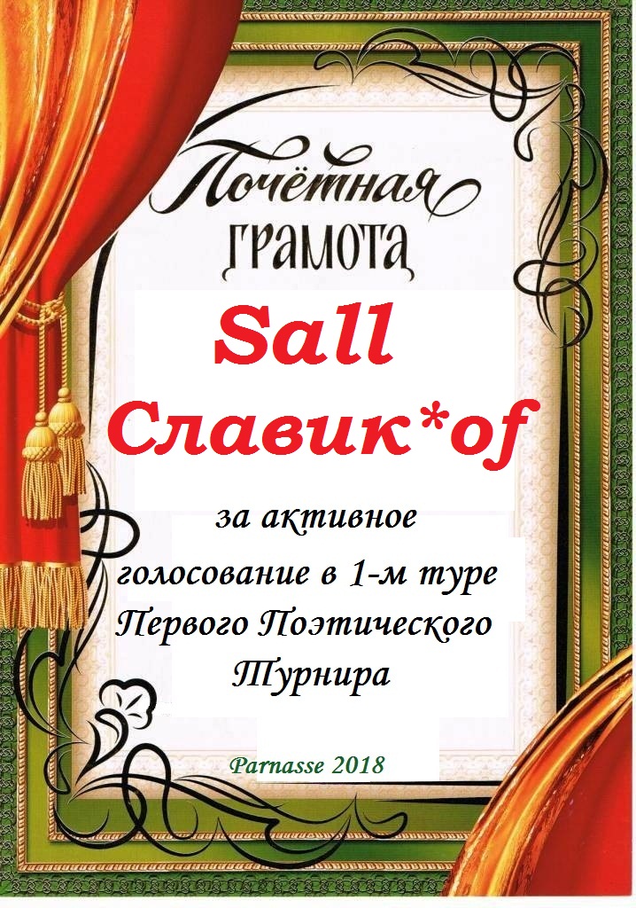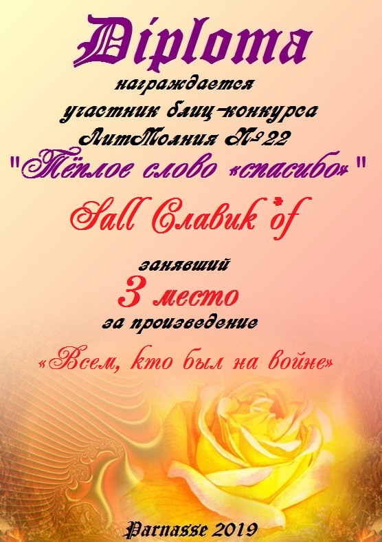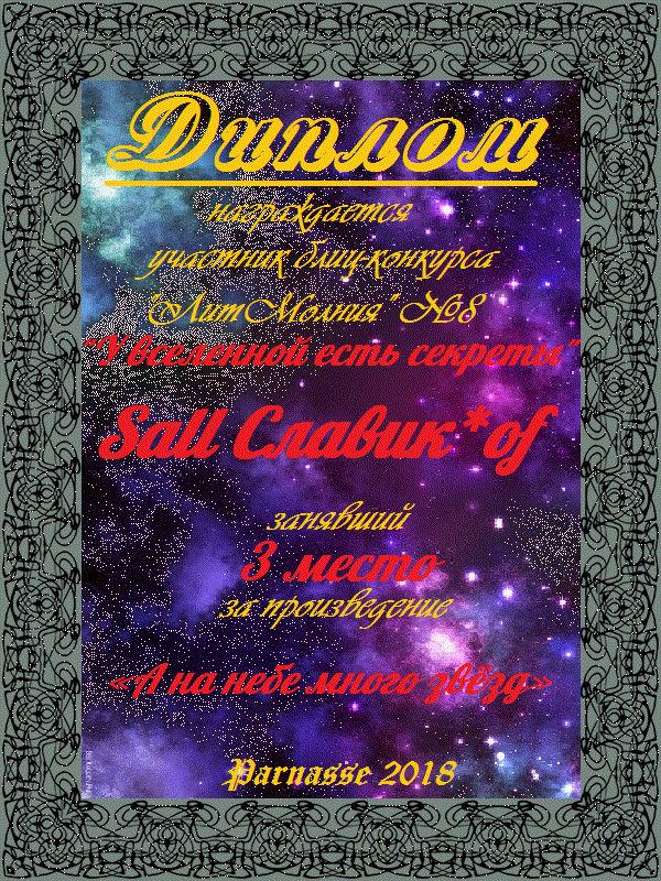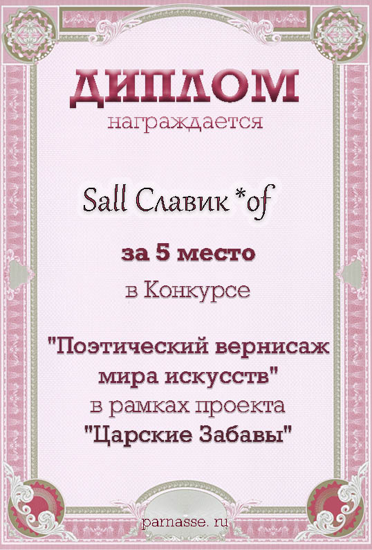 Поздравляю с занятым 3 местом в 8 туре IX Чемпионата Парнаса по Прозе (народное голосование)!