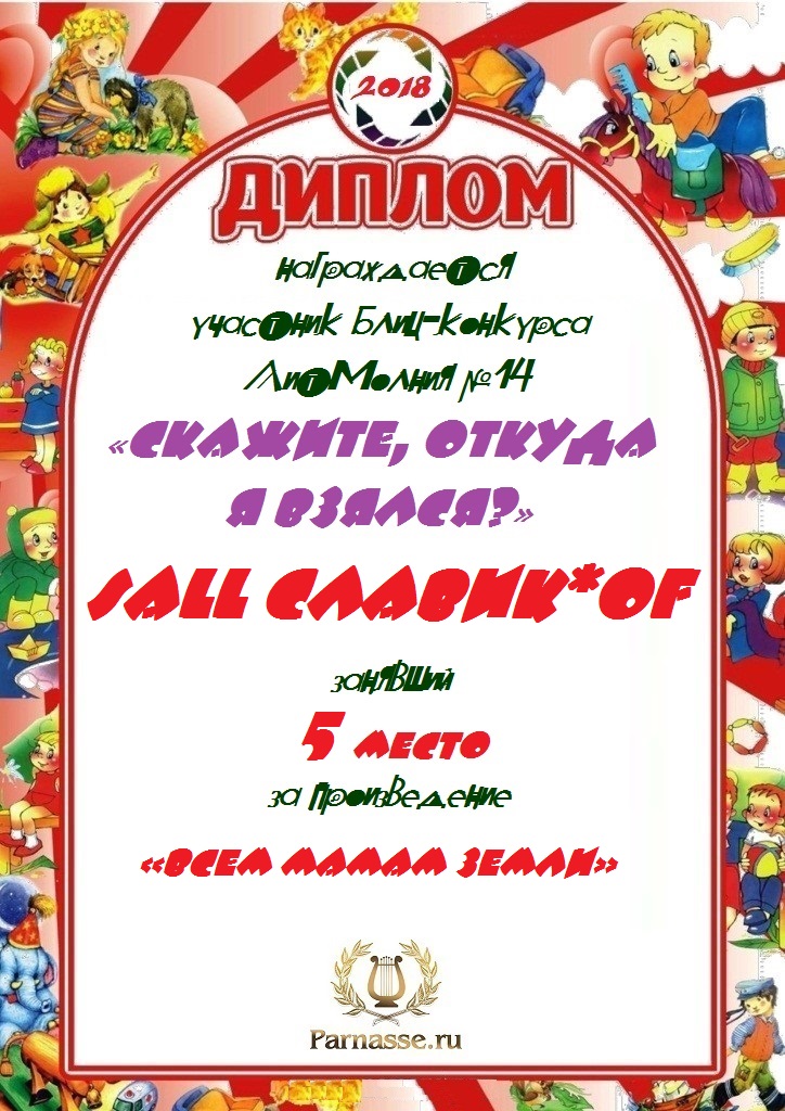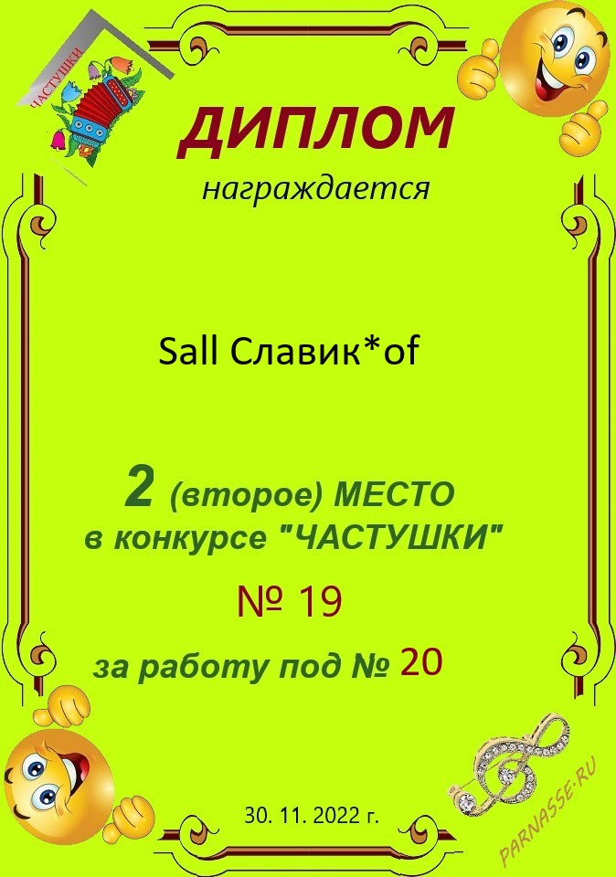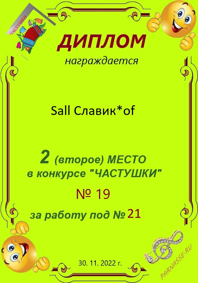 День Смеха - праздник, отмечаемый 1 апреля во многих государствах и странах. Во время этого праздника принято разыгрывать друзей и знакомых или просто мягко подшучивать над ними. Первый массовый первоапрельский розыгрыш состоялся в Москве в 1703 году. В этот день люди шутили, веселились, смеялись, встречая пробудившегося из спячки Домового. Было принято наряжаться в нелепые одежды, разыгрывать друг друга и валять дурака. Давайте на Парнасе отметим день Смеха добрыми шуточными стихами. Пусть добро и радость салютуют!