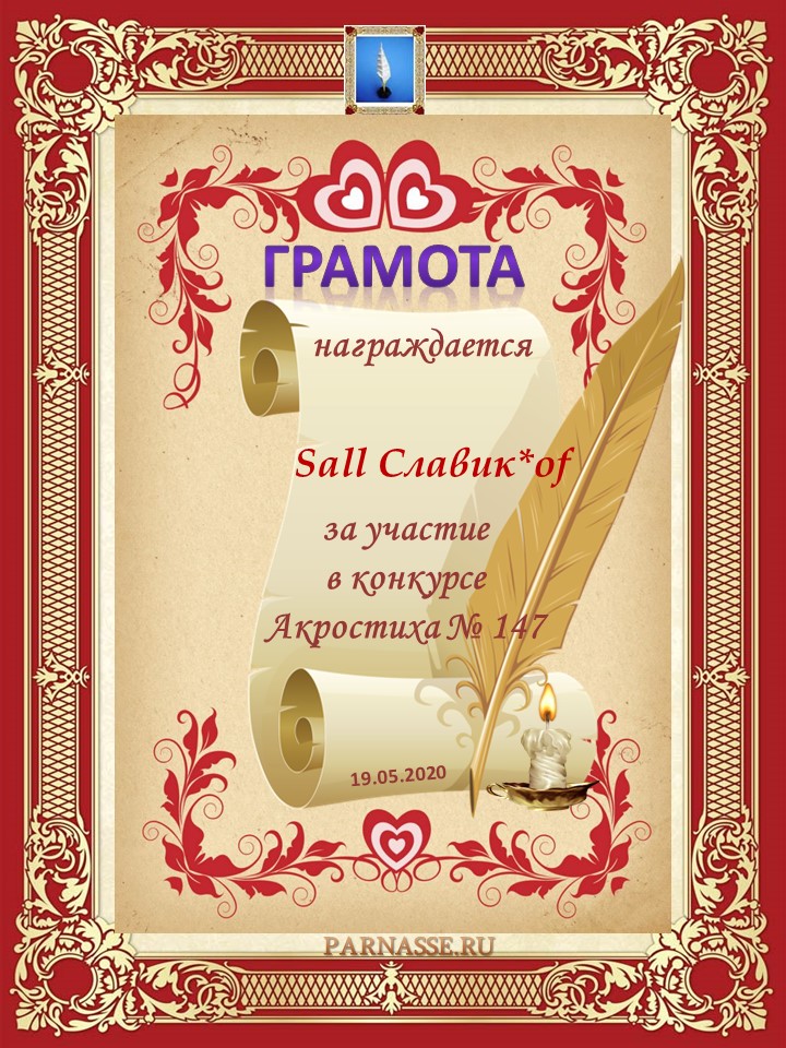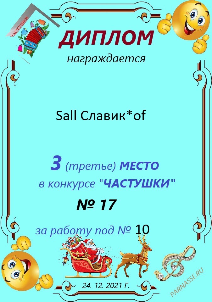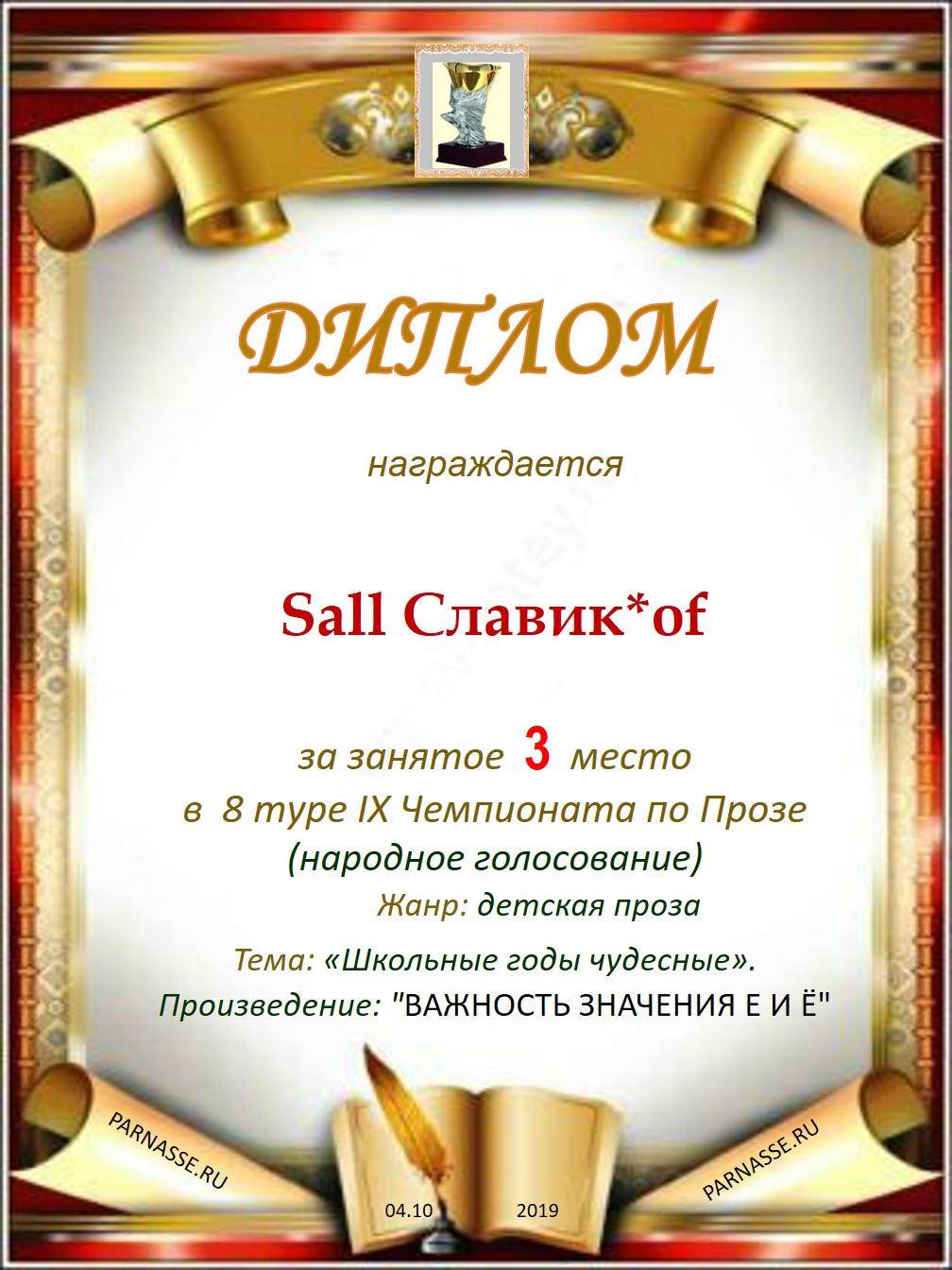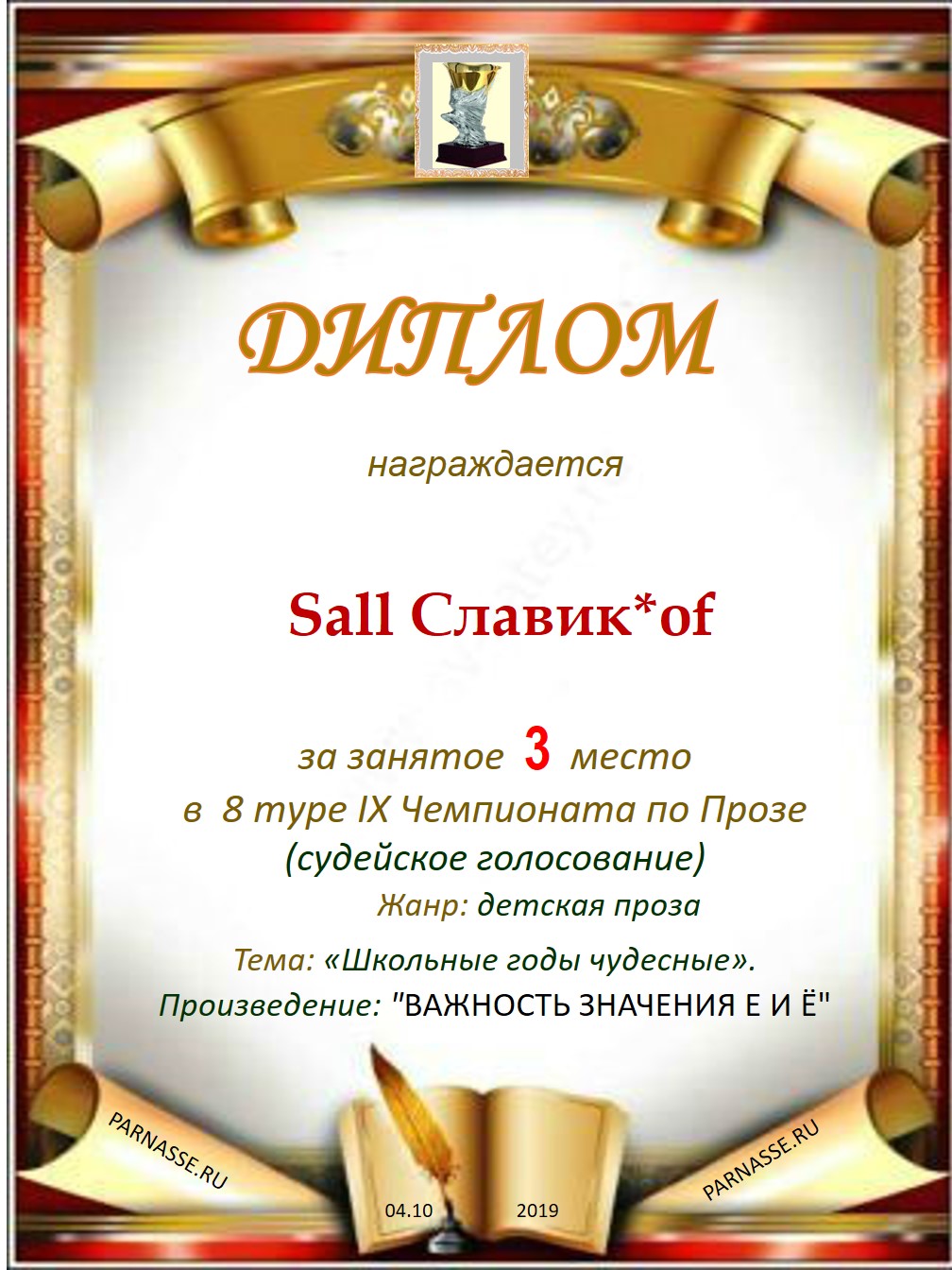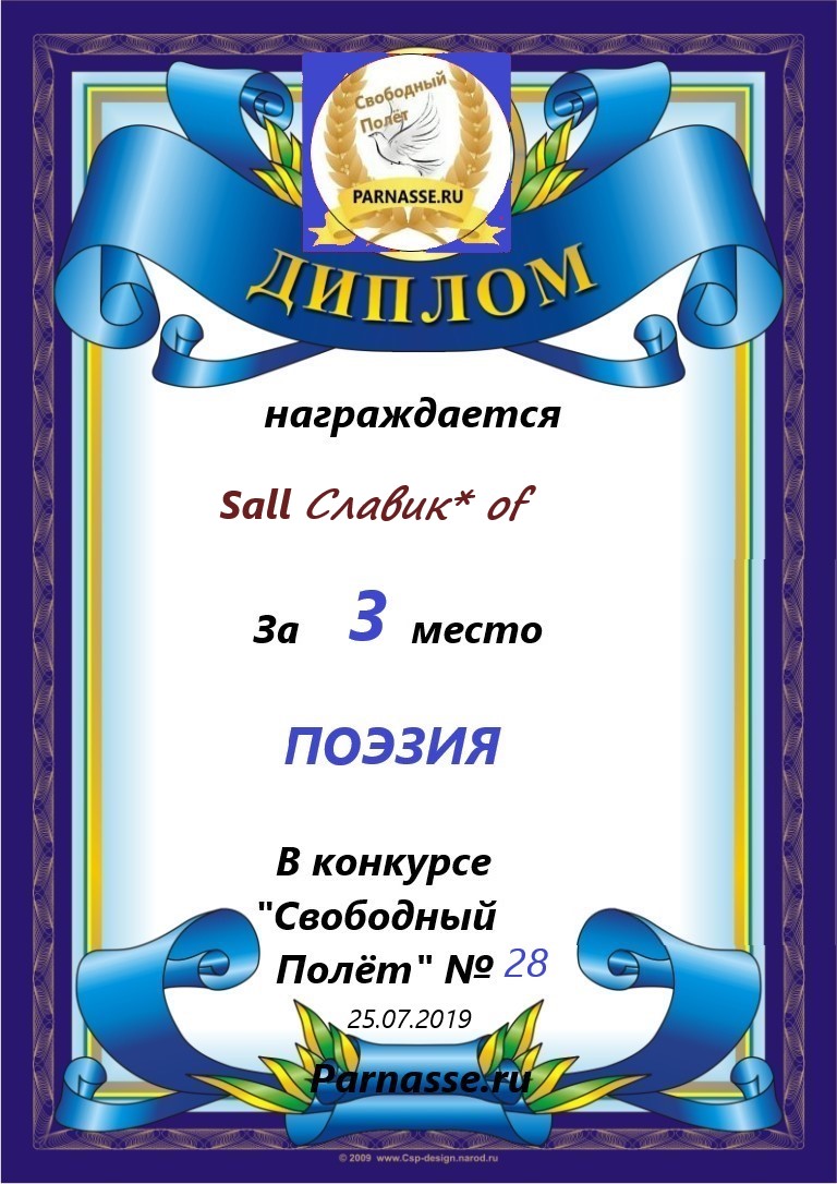 Поздравляю с занятым 3 местом в 8 туре IX Чемпионата Парнаса по Прозе (судейское голосование)!