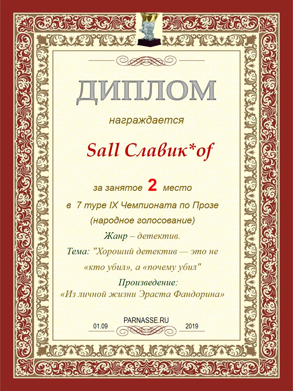 Поздравляю с занятым 2 местом в 7 туре IX Чемпионата Парнаса по Прозе – народное голосование!