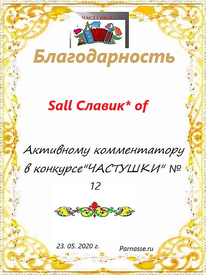 Спасибо за поддержку конкурса и профессиональные комментарии в IX Чемпионате Парнаса по прозе – 6 тур