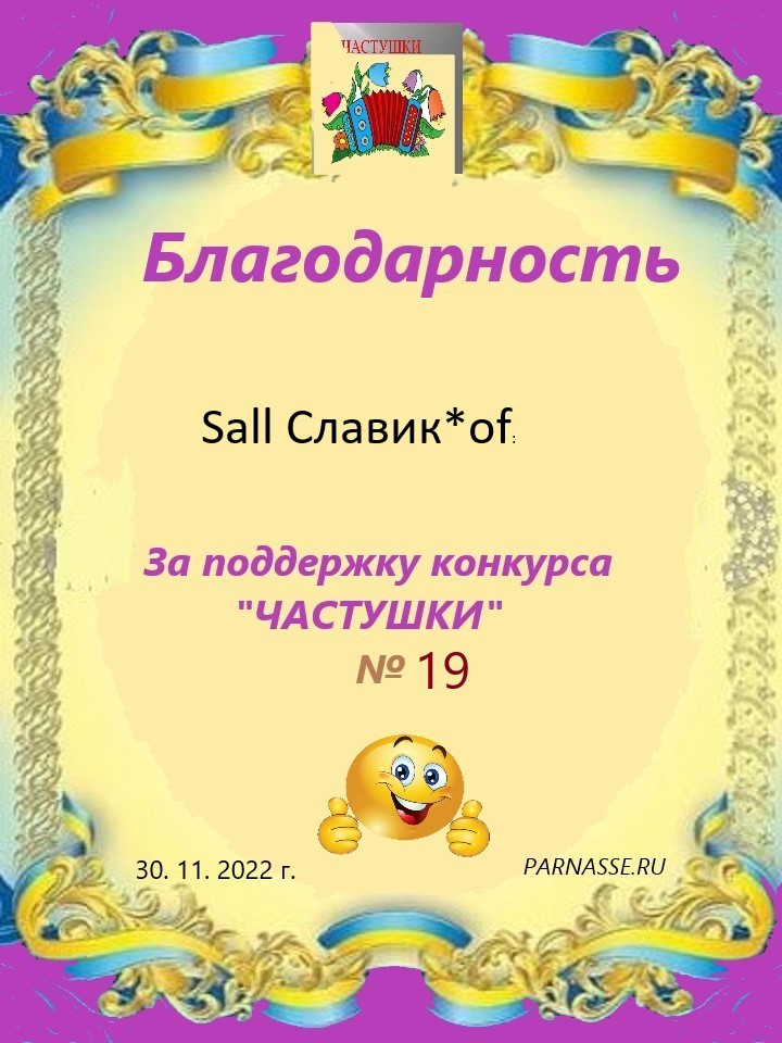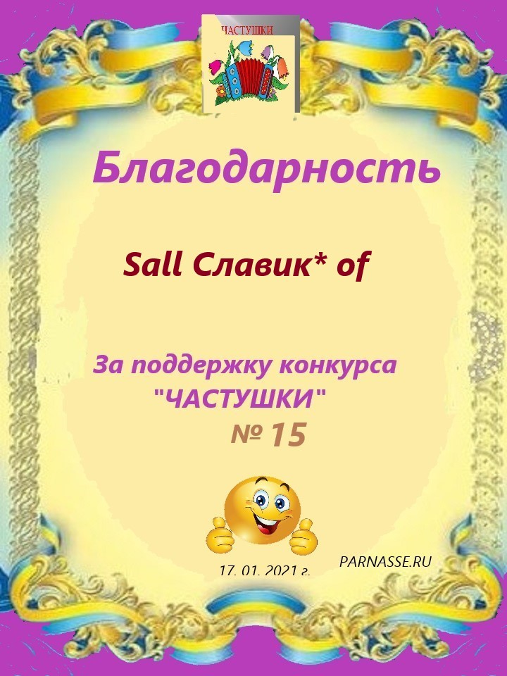 За поддержку и голосование в конкурсе "Счастья витамин"