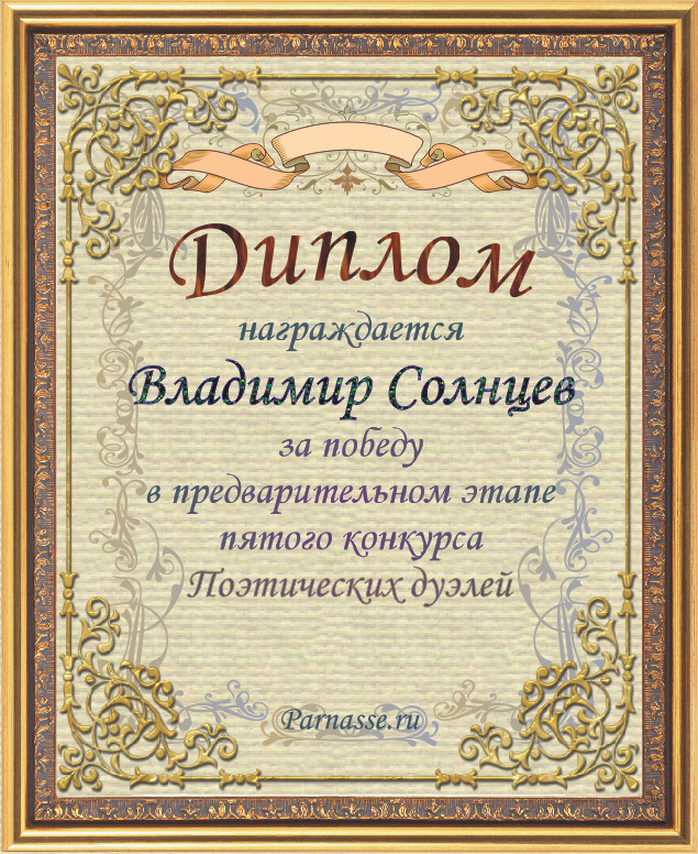 Диплом за победу в предварительном этапе пятого конкурса поэтических дуэлей