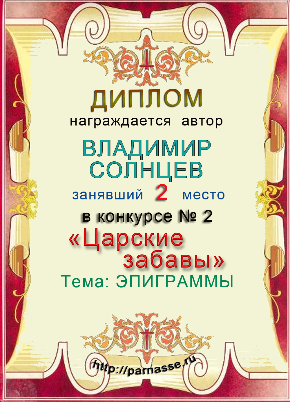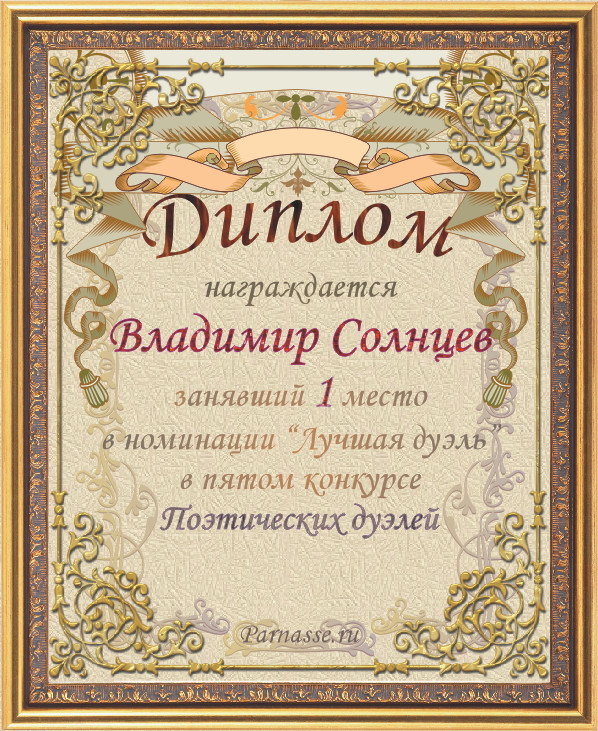 Диплом за 2-е место в номинации "Лучшая дуэль" по итогам общего голосования в десятом конкурсе поэтических дуэлей(№ 4.1)