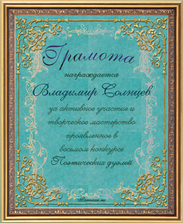 Благодарственная грамота за активное участие в восьмом конкурсе поэтических дуэлей