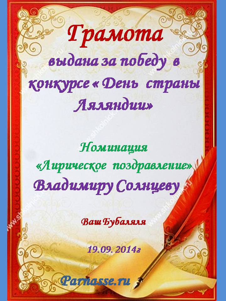 Владимир,поздравляем с победой в конкурсе лимериков!Желаем дальнейших творческих побед!!!