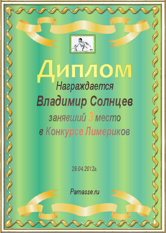 Диплом за 3 место в конкурсе лимериков №9 (29.04.2012.)