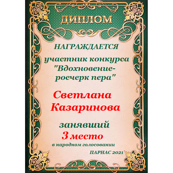 Вручается медаль за 1 место в 4 туре XII Чемпионата Парнаса по прозе