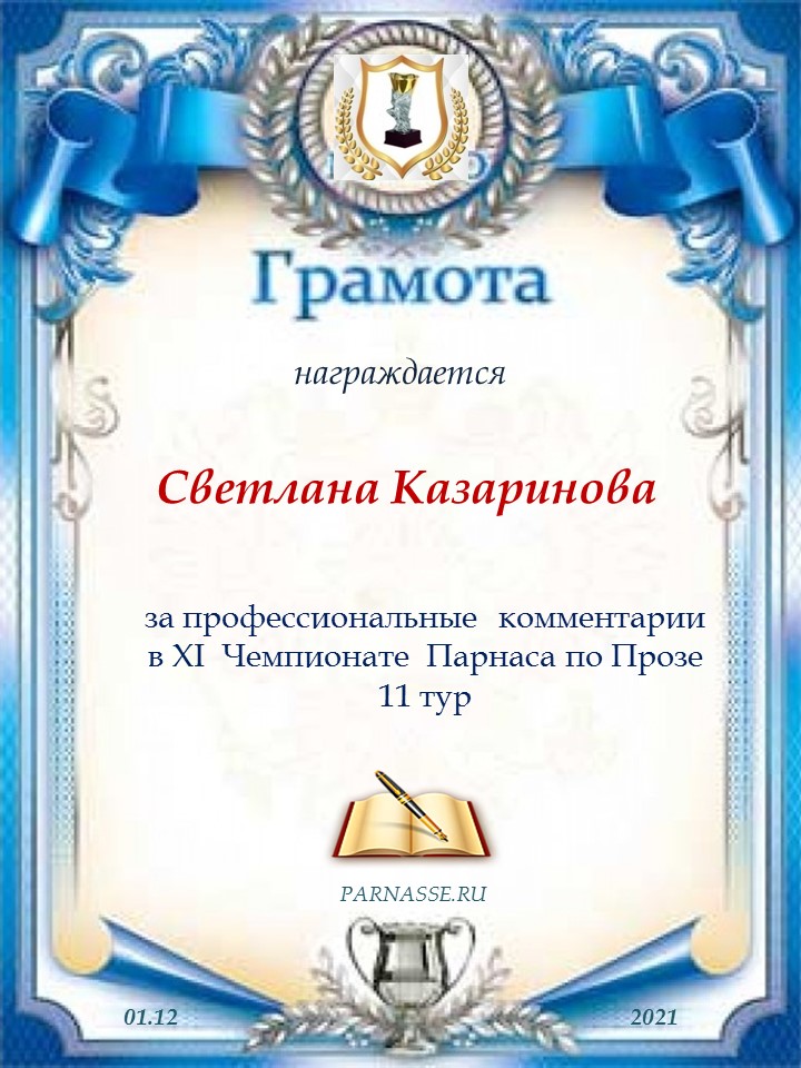 Спасибо за профессиональные комментарии в 11 туре XIII Чемпионата Парнаса по прозе!