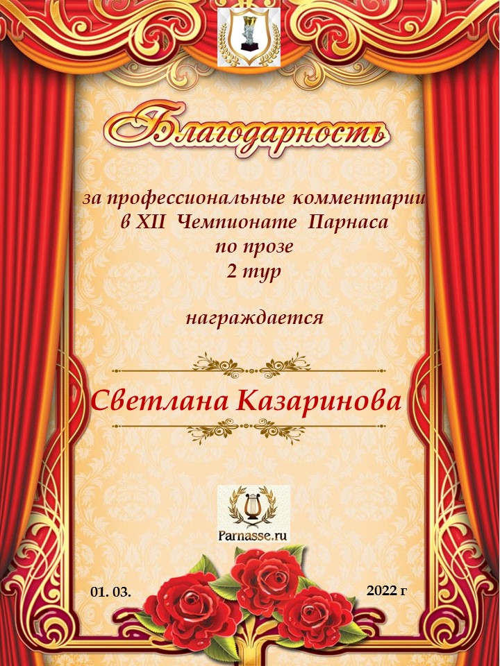 Спасибо за профессиональные комментарии во 2 туре XIII Чемпионата Парнаса по прозе!