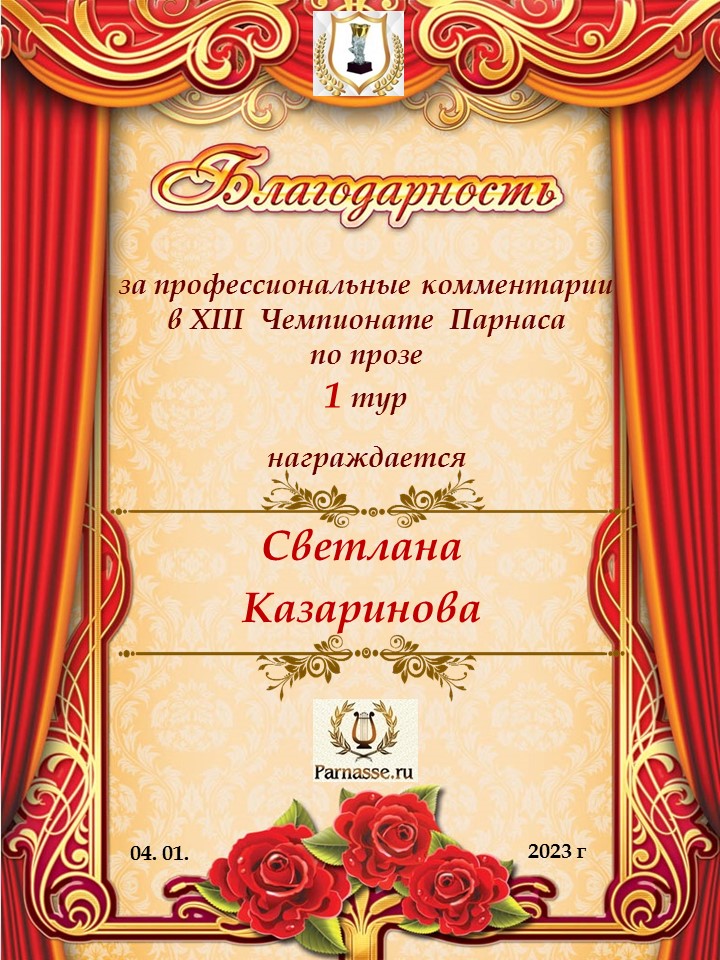 Спасибо за профессиональные комментарии в 4 туре XIII Чемпионата Парнаса по прозе!