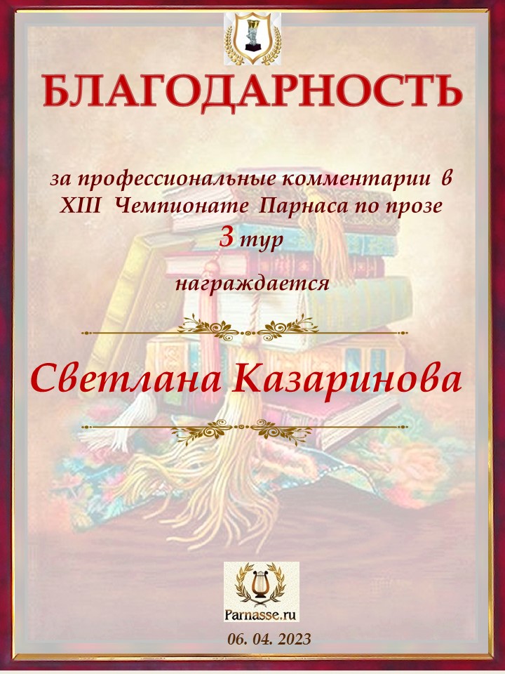 Спасибо за профессиональные комментарии в 3 туре XIII Чемпионата Парнаса по прозе!