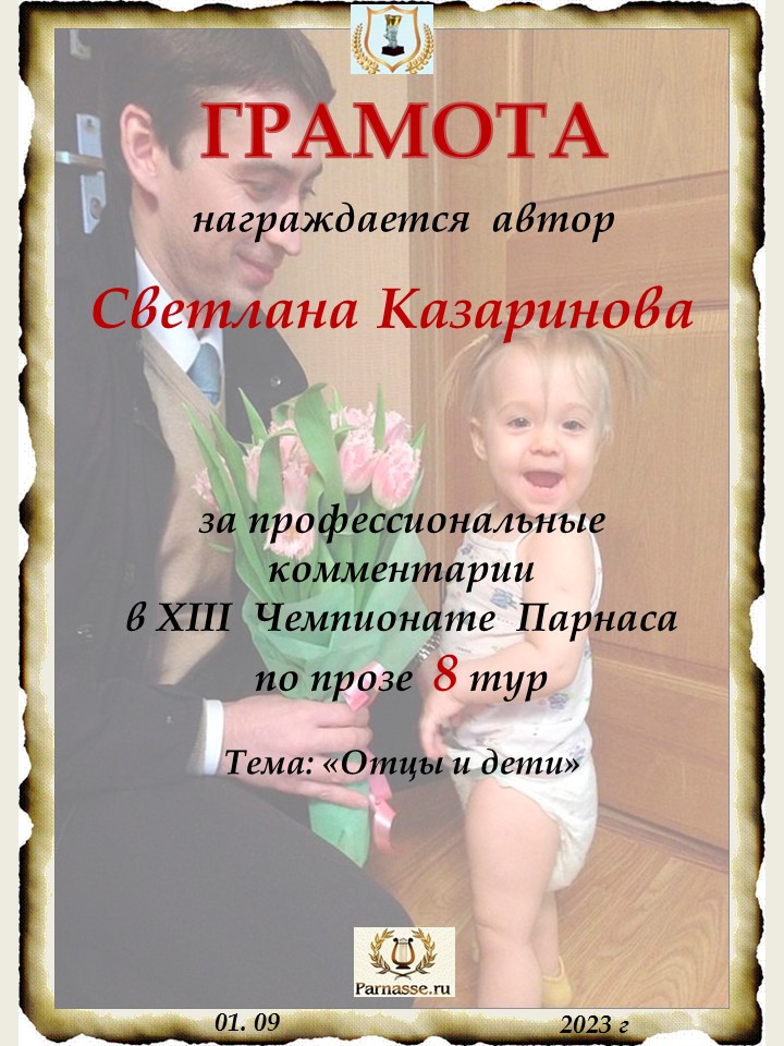 Спасибо за профессиональные комментарии в 8 туре XIII Чемпионата Парнаса по прозе!
