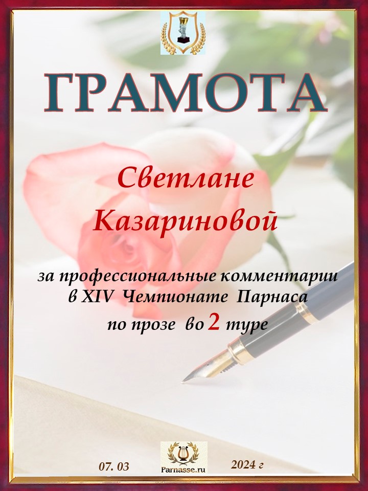 Спасибо за профессиональные комментарии во 2 туре XIV Чемпионата Парнаса по прозе!