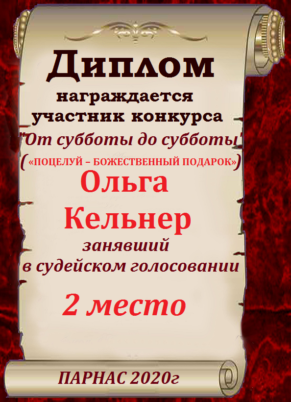 Второе место по итогам конкурса «Что может значить поцелуй? ", судейское голосование. Поздравляем с прекрасной победой!