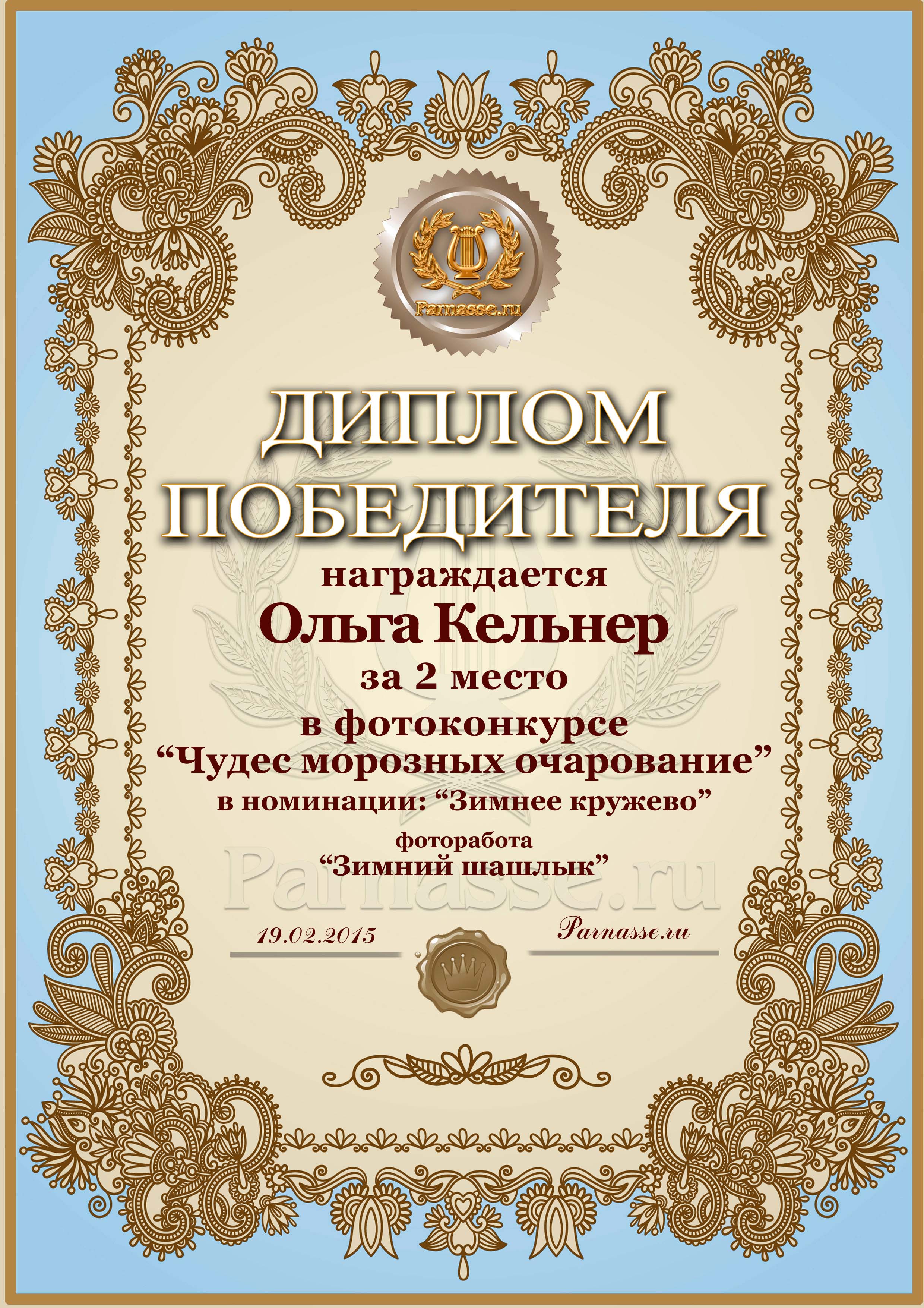 Диплом за 2 место в фотоконкурсе "Чудес морозных очарование"