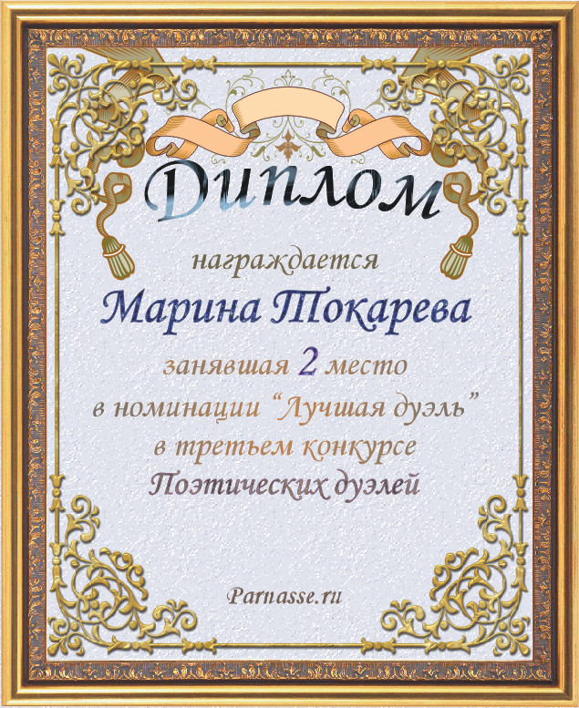 Диплом за второе место в номинации "Лучшая дуэль" в третьем конкурсе Поэтических дуэлей