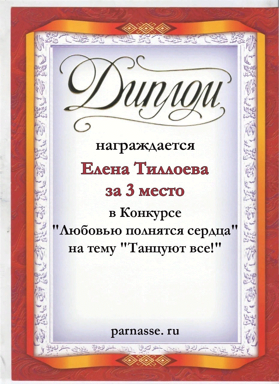 Первое место по итогам конкурса "А я стану душой твоей"