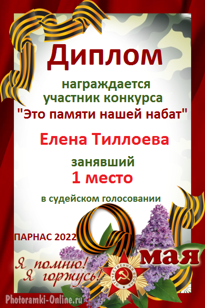 Первое место по решению Администрации и Главного судьи конкурса "Навечно в памяти"
