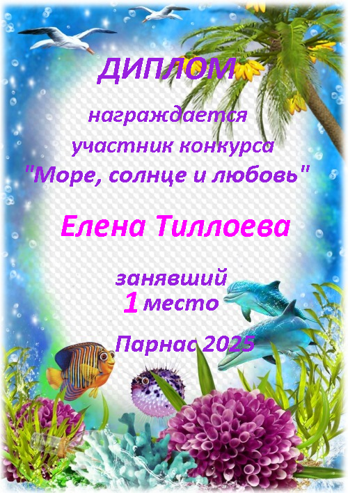 Первое место по итогам конкурса "Море, солнце и любовь"