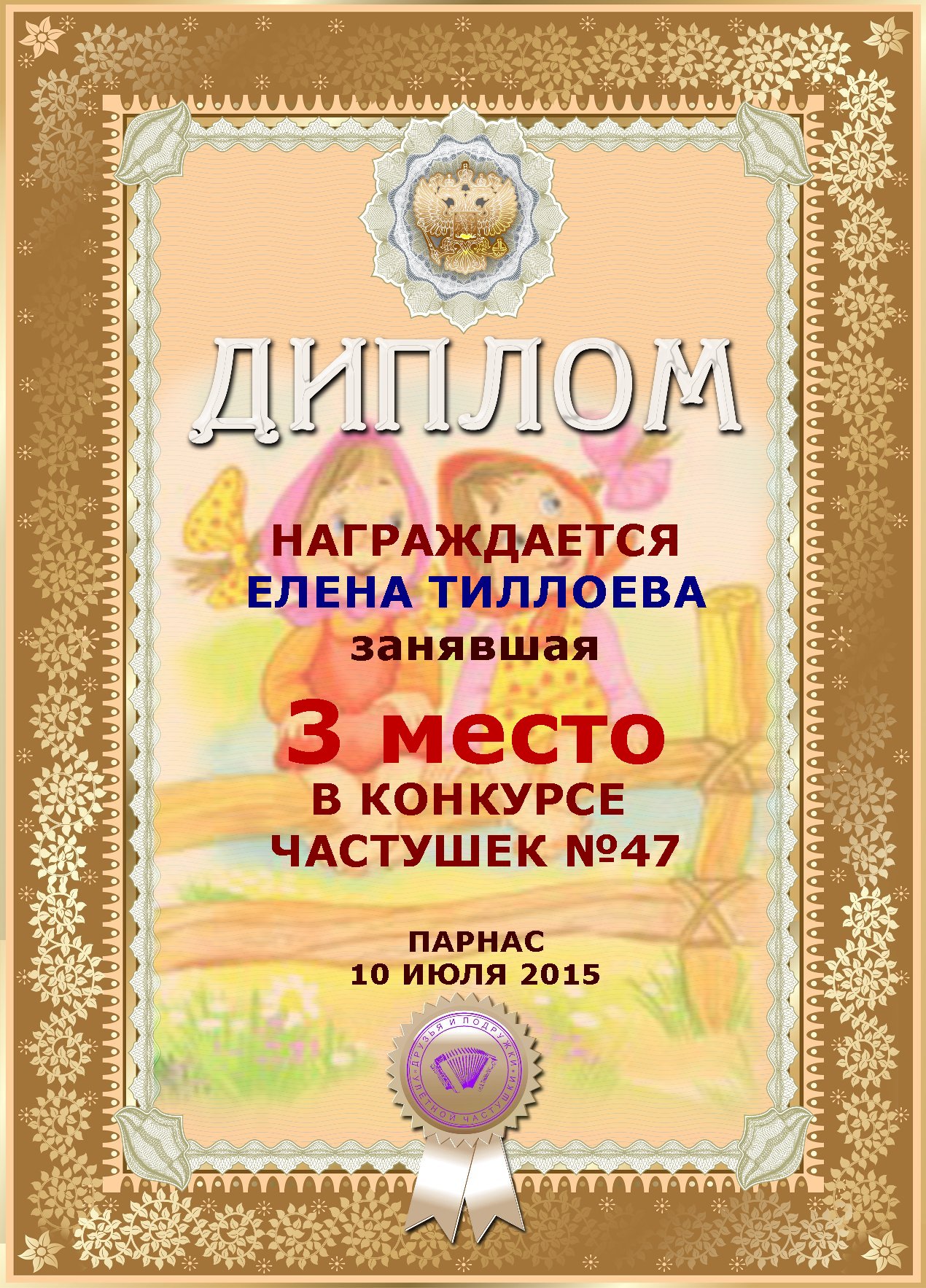 за 3е место в конкурсе частушек №47